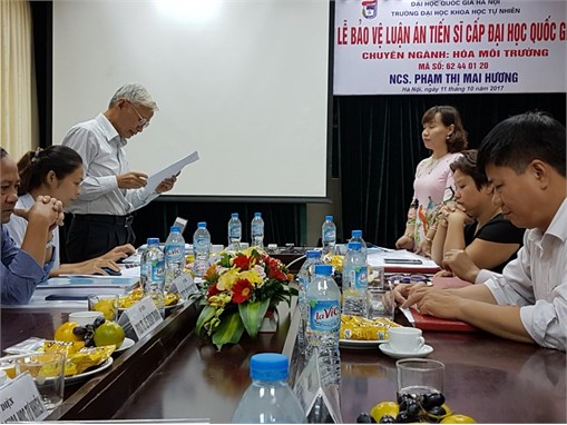 9h00 ngày 11 tháng 10 năm 2017, tại Phòng Hội thảo, Khoa Hóa học Trường Đại học Khoa học Tự nhiên - ĐHQGHN, giảng viên - NCS Phạm Thị Mai Hương đã bảo vệ thành công luận án tiến sĩ.